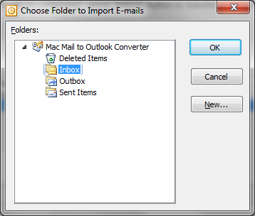 - Sie können jetzt gehen zum Importieren von Nachrichten. Wenn Sie Mac-Mail-Nachrichten in PST-Datei importieren möchten, Sie müssen den Arbeitsmodus im Hauptmenü ändern. Die Haupt-Taste ändert sich die Beschriftung von Importieren zu Speichern in diesem Fall. Klicken Sie auf"Importieren"oder"Speichern"-Taste, um die Eingabeaufforderung für Outlook-Ordner-Auswahl finden Sie unter.